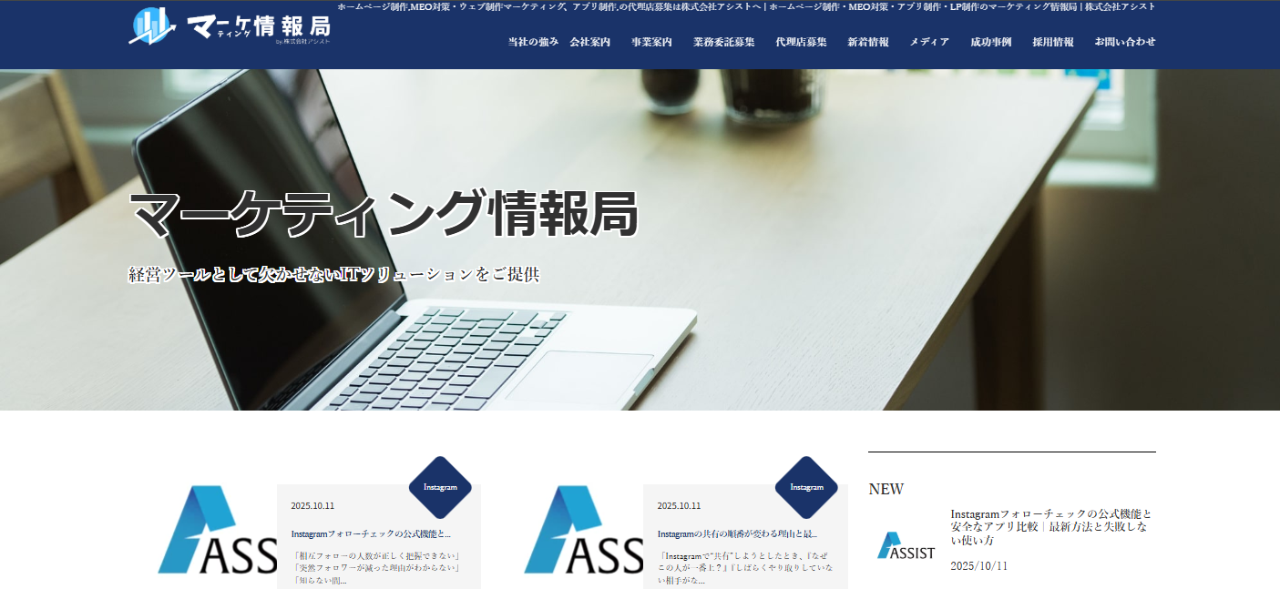 こちらで紹介するのはマーケティング情報局、株式会社アシストさんが運営されているサイトです。ホームページ・ウェブ制作、マーケティングまで幅広く手がけられています。他にもSEO専門サイト等など運営されています。以下の関連サイトもぜひご覧あれ!